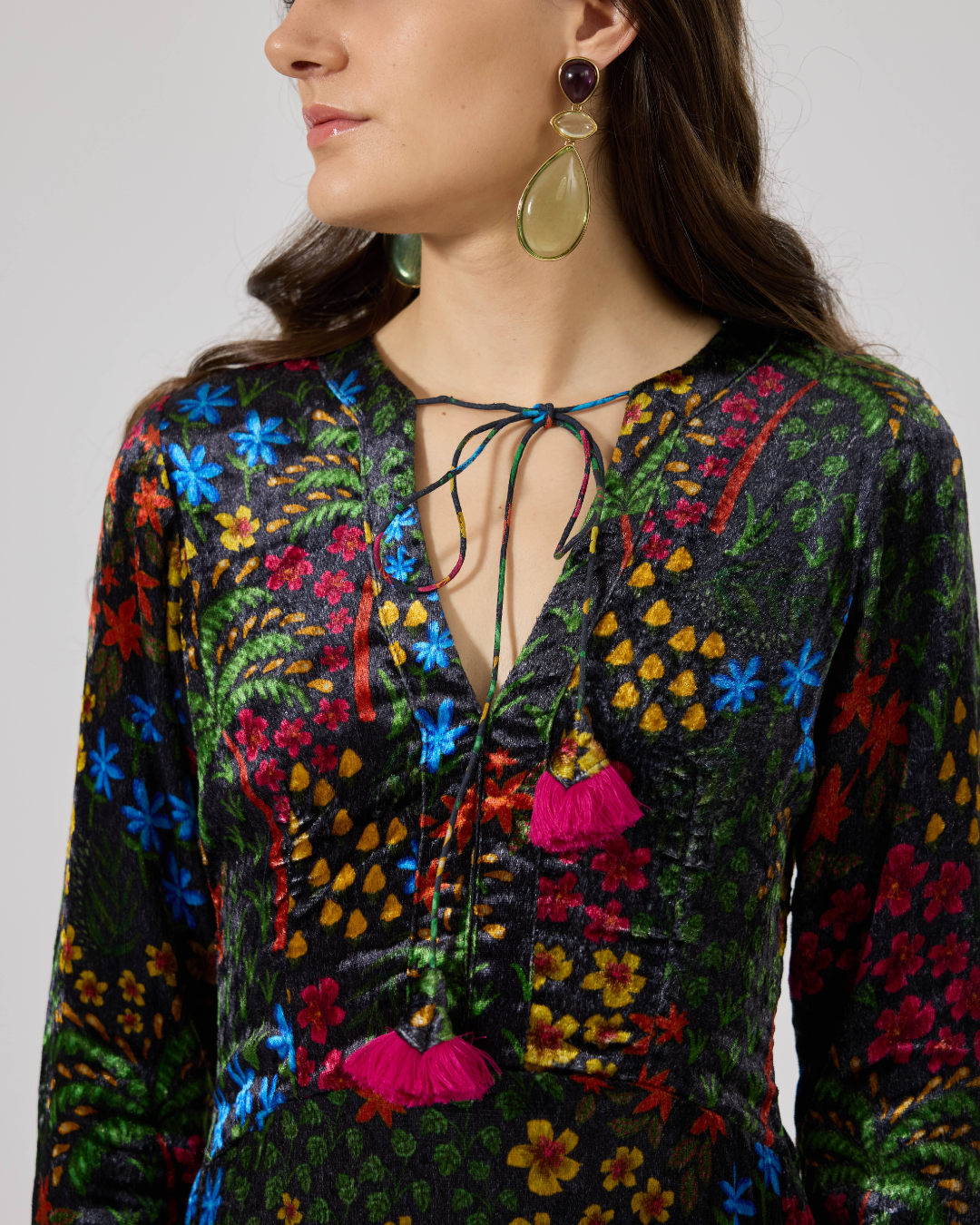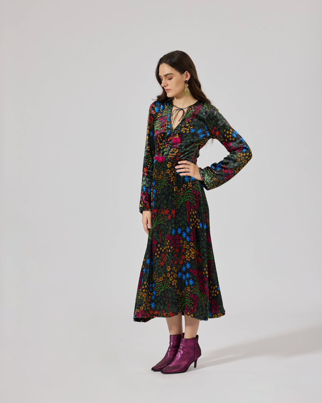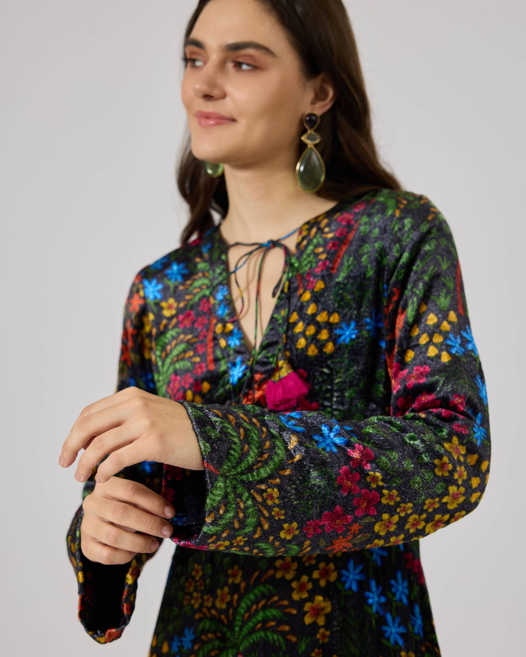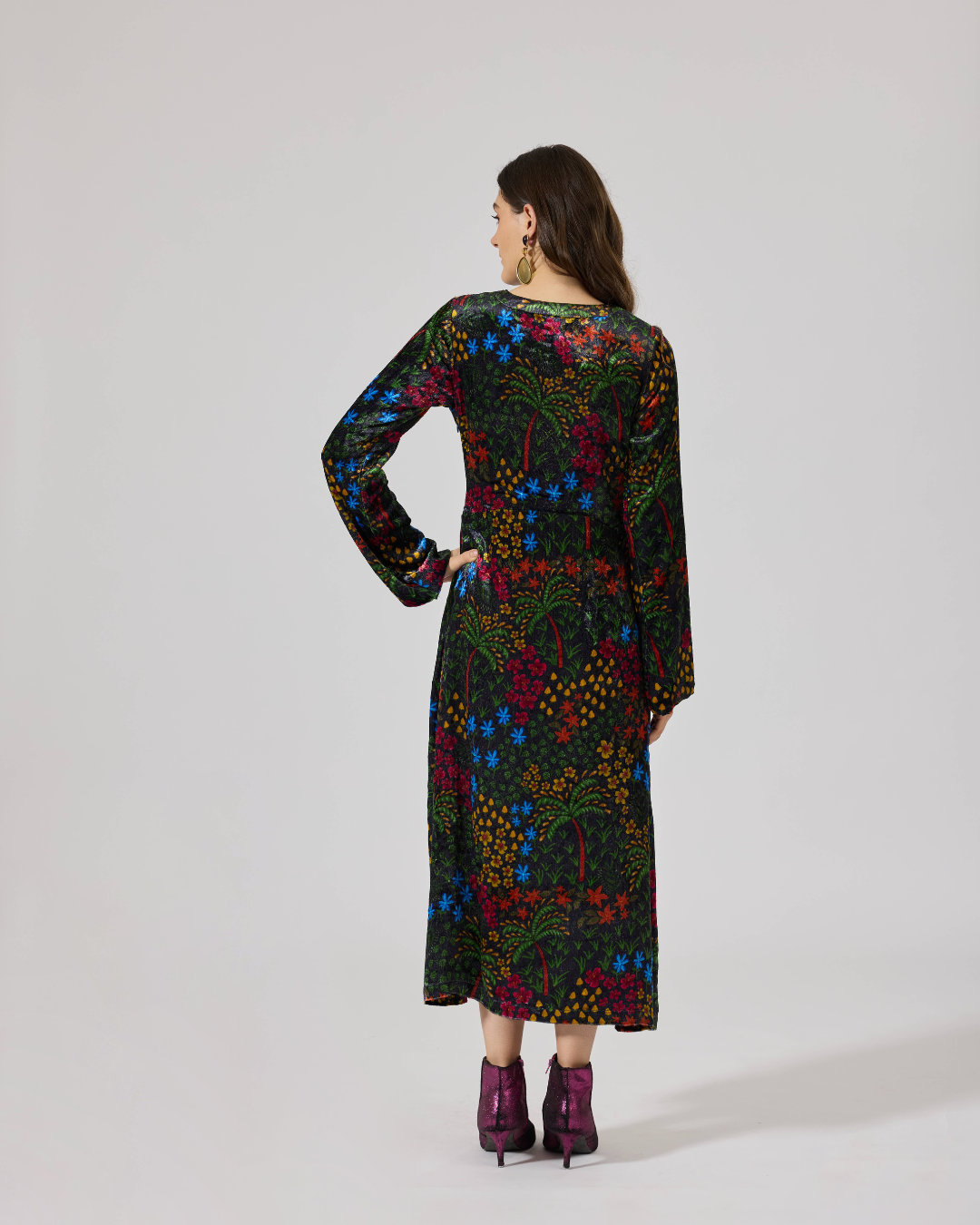 FIONA VELVET LONG SL DRESS FLORIDO