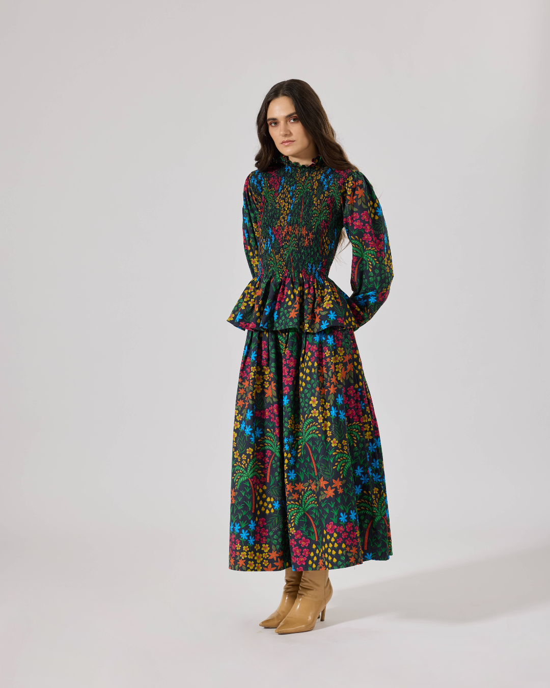 Introducing the FLEUR Smocked Peplum Top – your new go-to for effortless elegance! This beautifully smocked piece features a flattering peplum silhouette that celebrates your curves while adding a touch of sophistication. Whether you're dressing it up for a night out or keeping it casual, this versatile top pairs perfectly with our FLEUR trousers for a polished look, or throw it over your favorite denim for an instantly chic vibe. Comfort meets style in every wear!