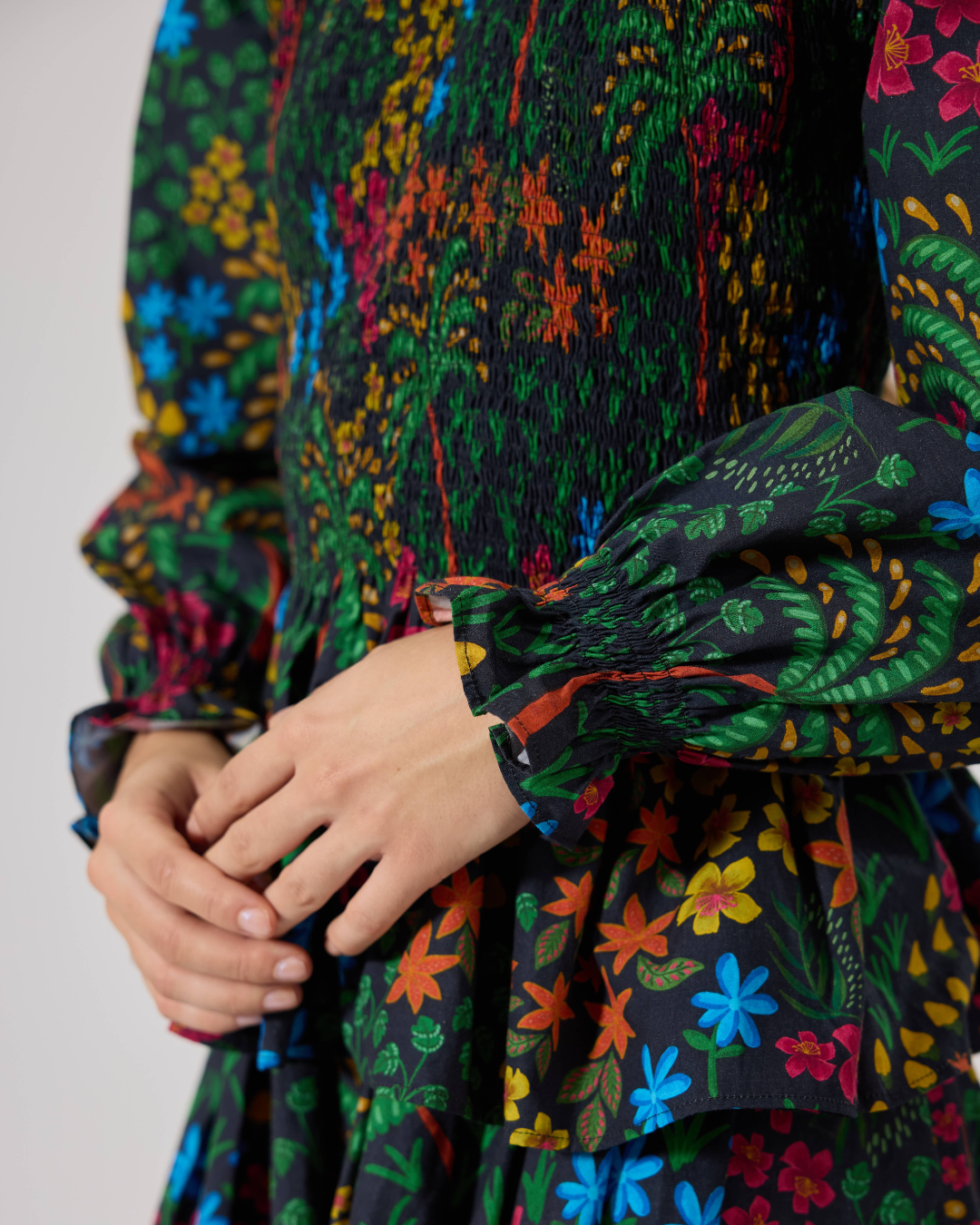 FLEUR SMOCKED PEPLUM TOP FLORIDO BLACK